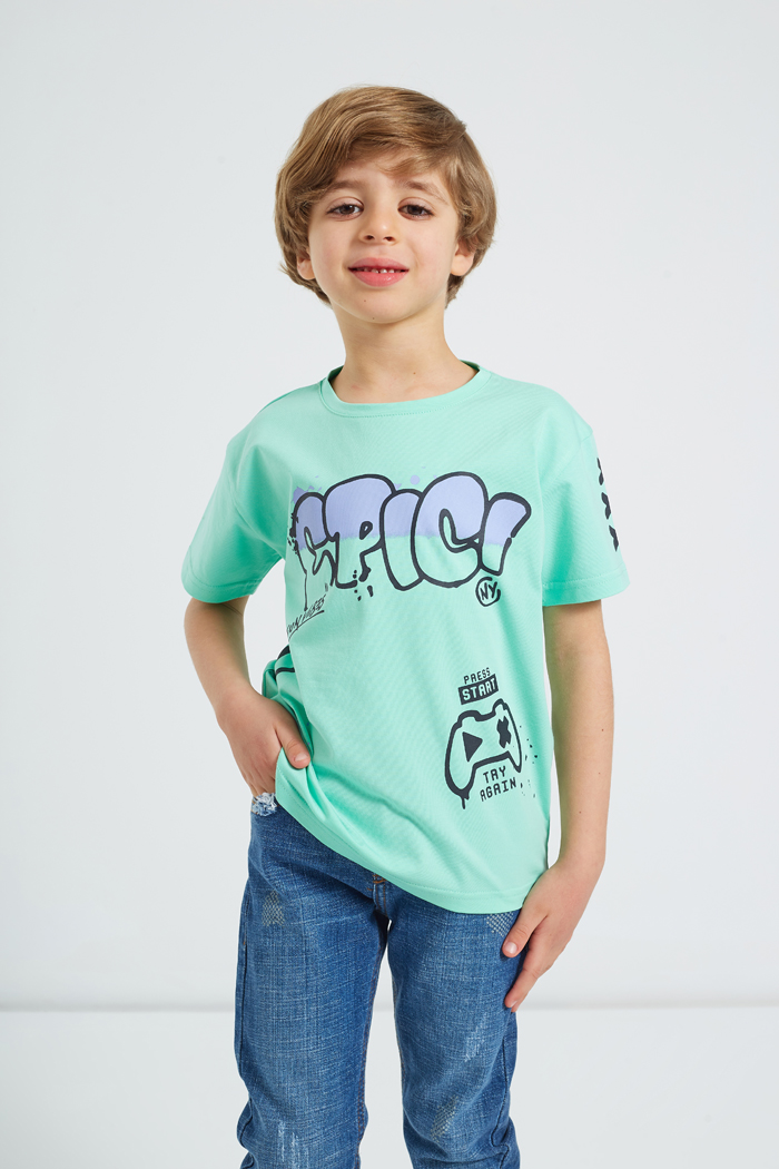 Pure cotton two-piece set baby boy My children A high-quality cotton T-shirt made from the finest Egyptian international cotton, and cotton pants with an export classification Khaleeji Tex is the pride of the Egyptian industry for manufacturing ready-made garments