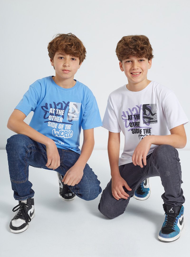 Pure cotton two-piece set Boys are from 8-12 years old children A high-quality cotton T-shirt made from the finest Egyptian international cotton, and cotton pants with an export classification Khaleeji Tex is the pride of the Egyptian industry for manufacturing ready-made garments