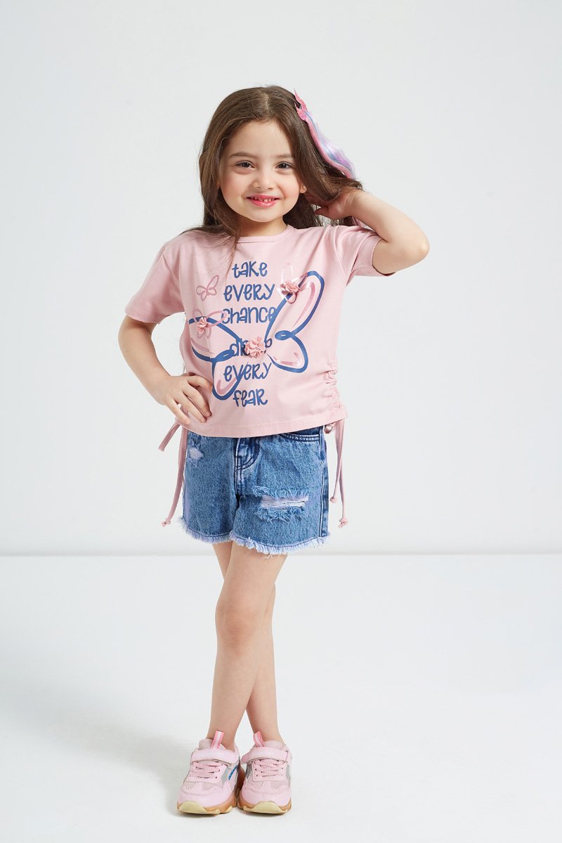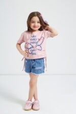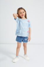 Pure cotton two-piece set Girls are from 3-7 years old children A high-quality cotton T-shirt made from the finest Egyptian international cotton, and cotton pants with an export classification Khaleeji Tex is the pride of the Egyptian industry for manufacturing ready-made garments